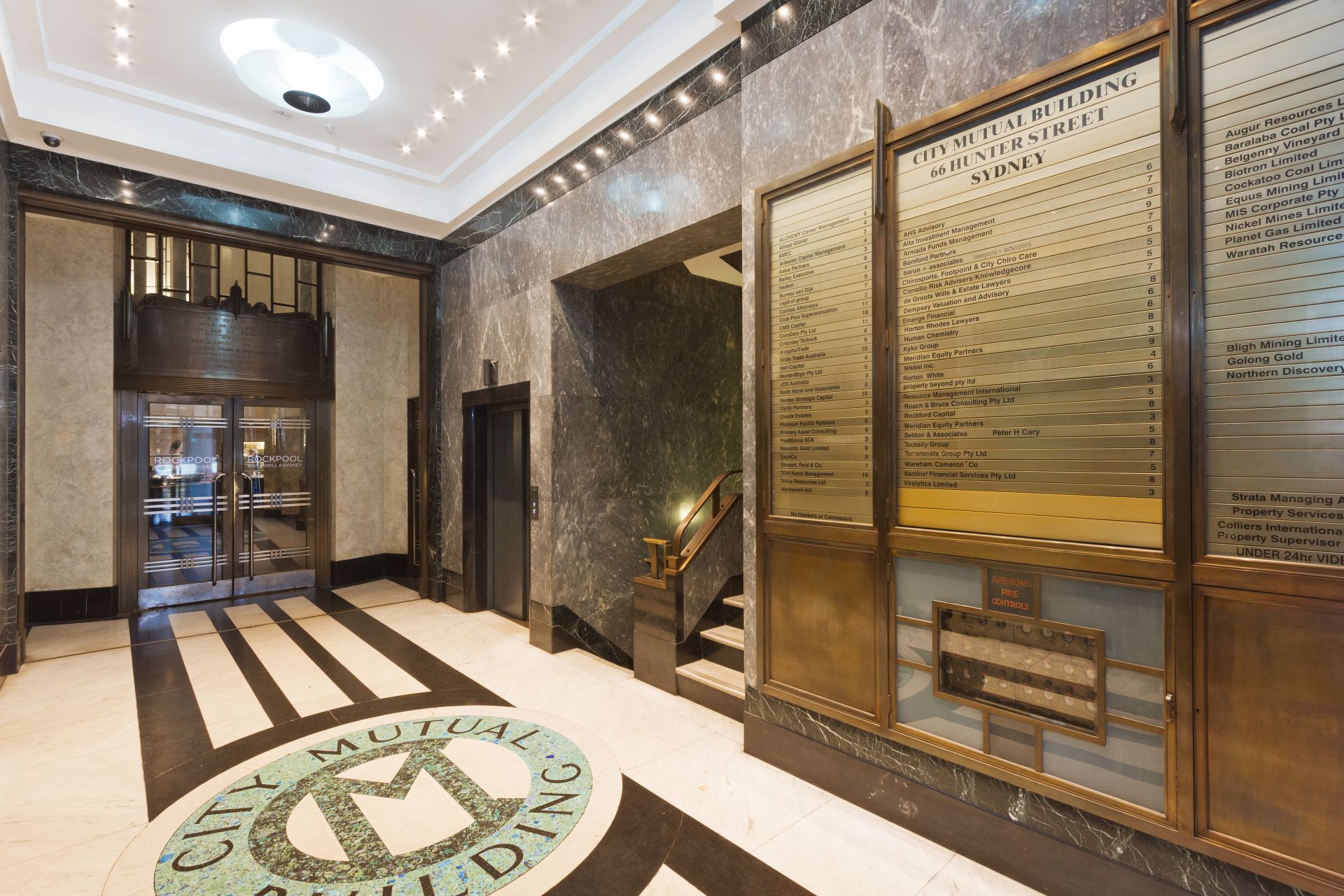 The City Mutual Building is a classic example of Interwar Art Deco architecture with an imposing street presence and a stately main lobby featuring marble finishes. It is also home to the iconic Rockpool Bar & Grill and offers excellent building services including four modern lifts.