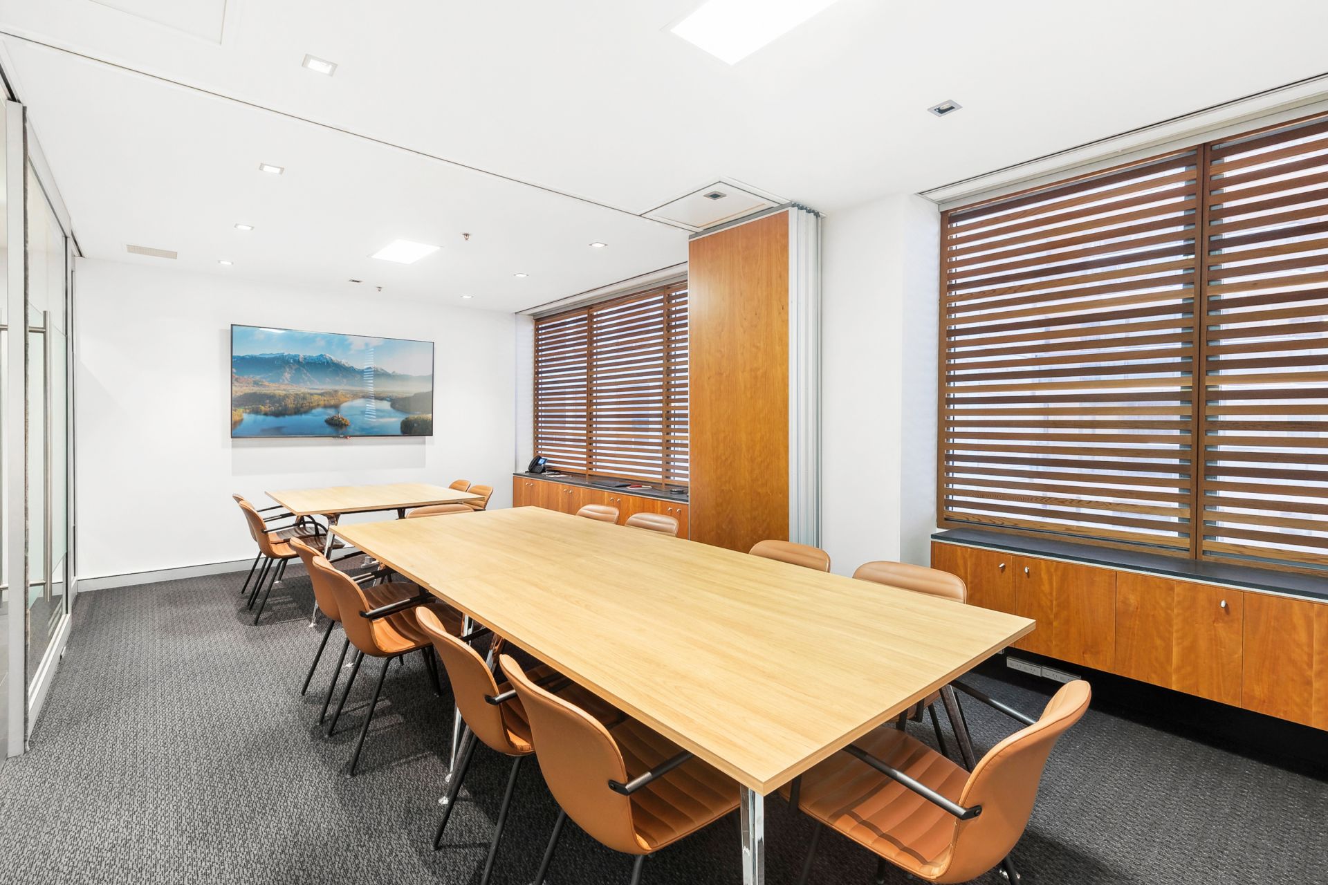 The property features a high-quality fitout ideal for legal, financial or professional services firms. It includes a welcoming reception area with custom timber finishes, an executive office with panoramic windows, a large boardroom with integrated cabinetry and a flexible layout combining private offices and open-plan workspaces. The interiors are modern, sophisticated and designed to support productivity and client engagement.
