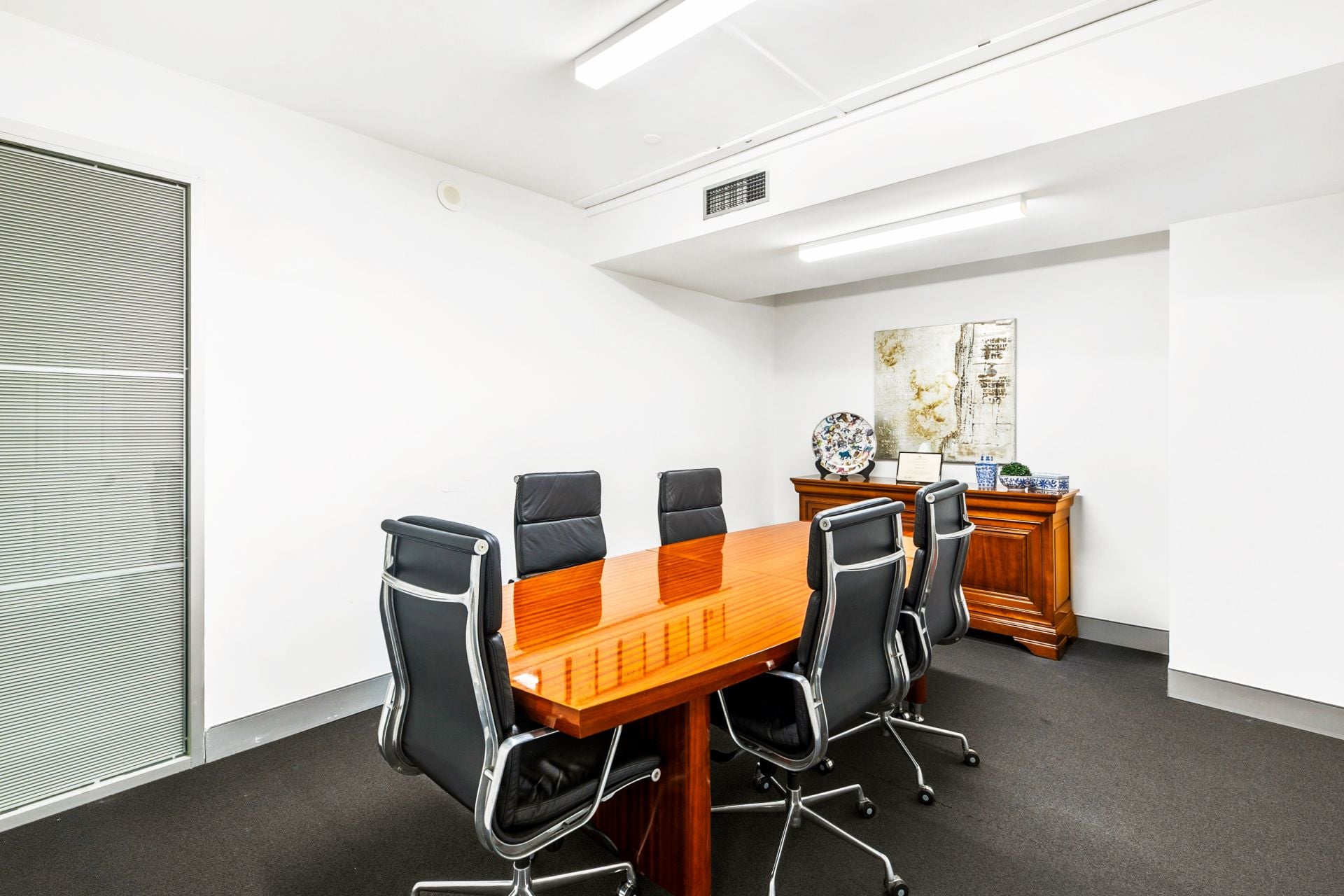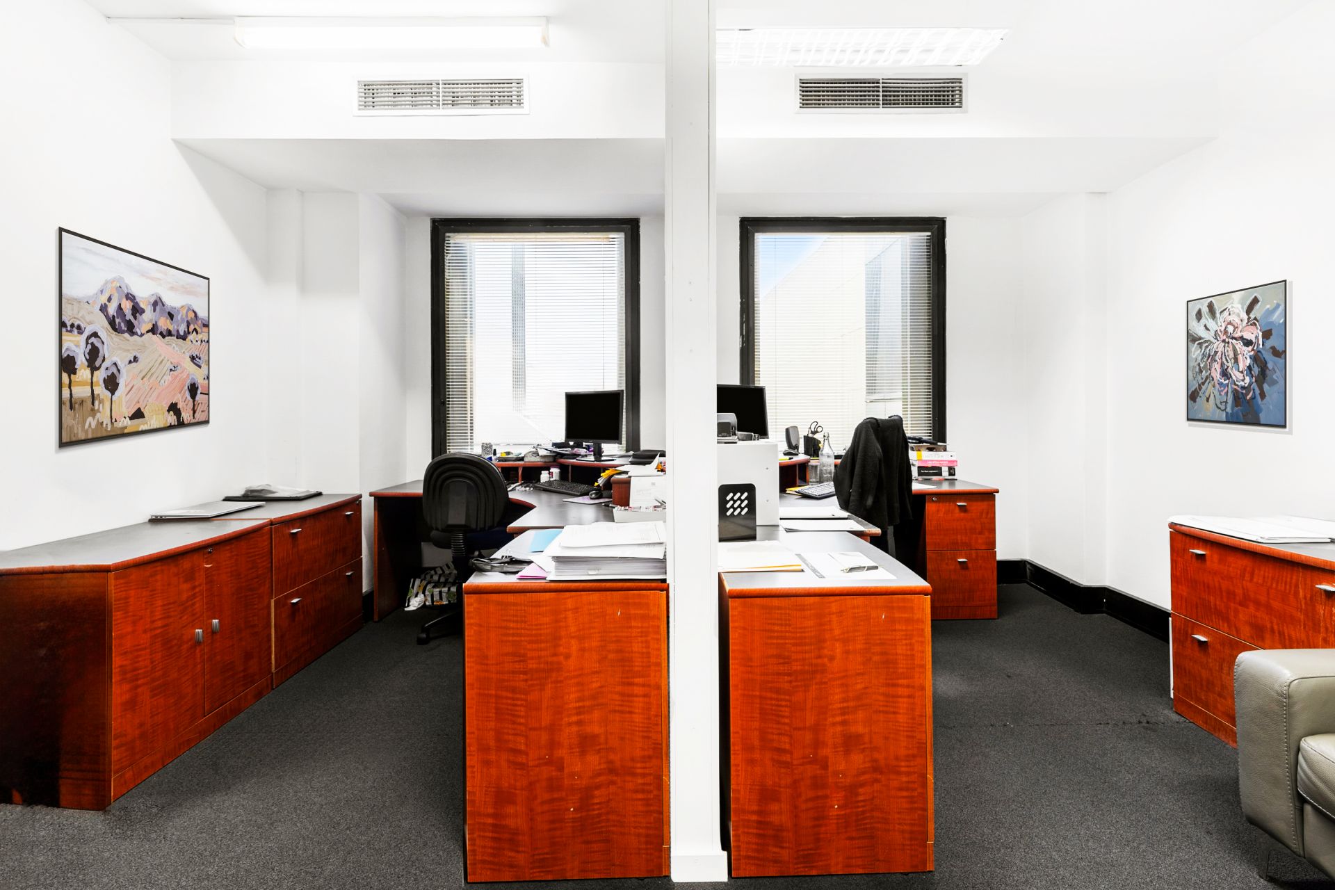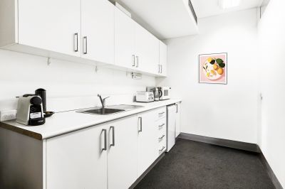 Internally the property features a stylish office fitout incorporating a spacious reception and client meeting area, three impressive meeting rooms, separate storage and data rooms, internal kitchen amenities and a large open plan area suitable for multiple workstations or executive offices. The property also includes ducted air conditioning with after hours capability, established phone and data connectivity and easy access to communal bathroom amenities.
